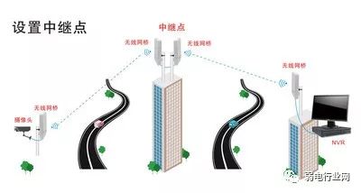 無線網橋應用于無線監控中時,有三種組網及傳輸方式,分別是點對點傳輸、點對多點傳輸、中繼傳輸。但實際應用中,中繼模式還是比較少用的,一是會增加成本,二是信號存在一定的損耗。